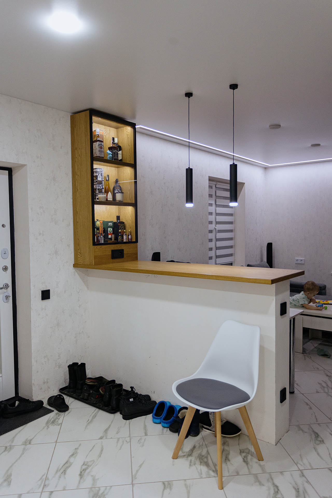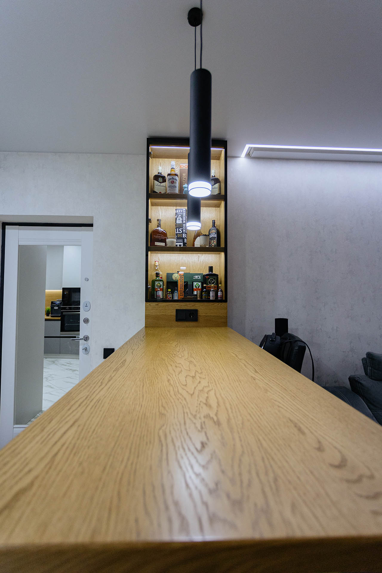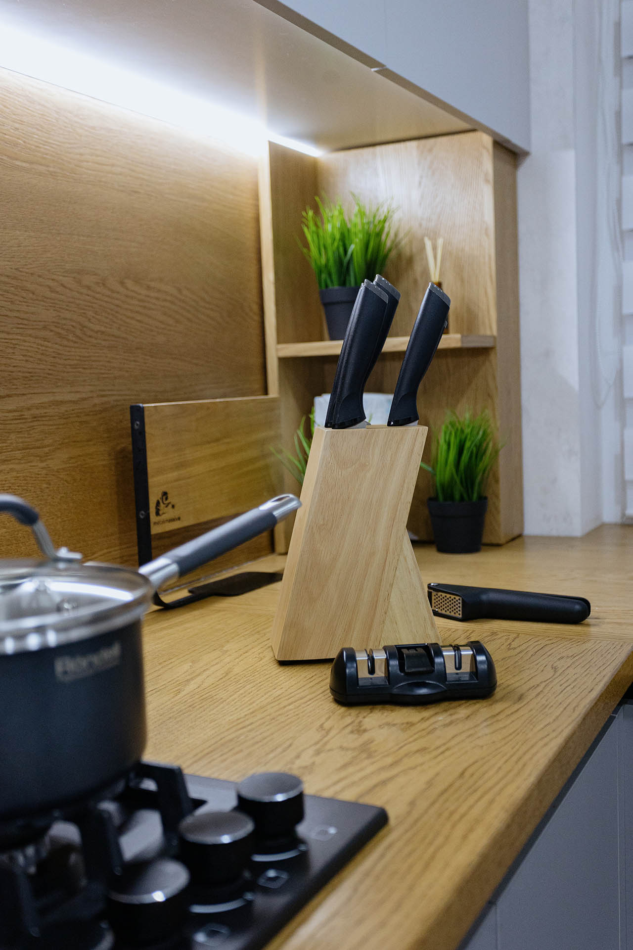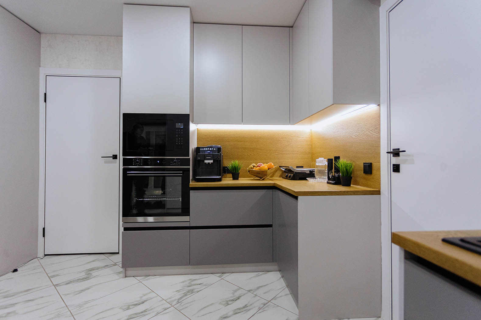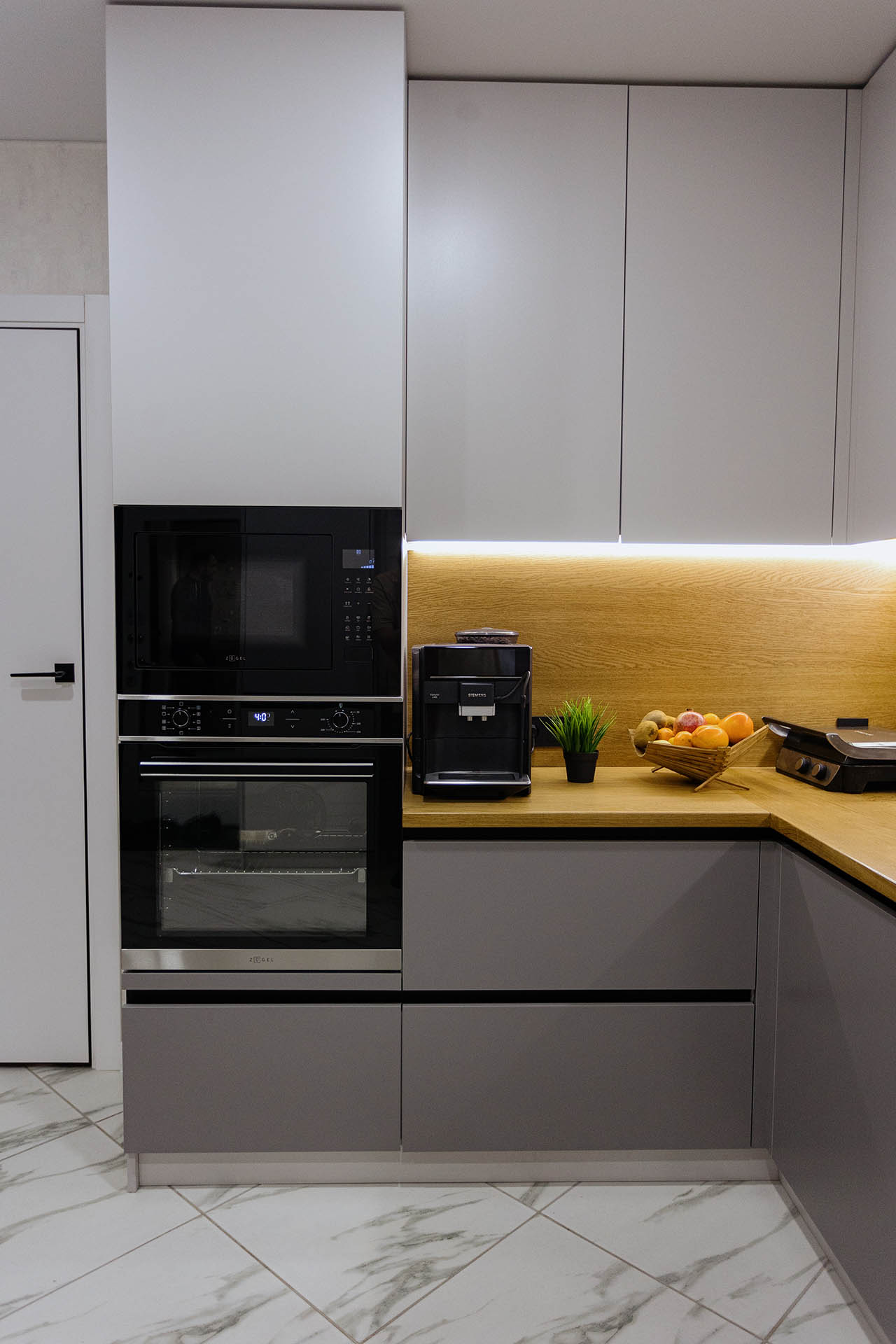 Кухня на заказ в светлых оттенках серого представляет собой элегантное и современное пространство, где каждая деталь проработана с учетом индивидуальных предпочтений. Столешница и фартук выполнены из натурального дерева, придающего интерьеру теплоту и природную красоту. Серые оттенки создают легкость и визуальное пространство, а использование дерева добавляет натуральности и уюта. В результате получается функциональная и стильная кухня, которая сочетает в себе современный дизайн и теплую атмосферу естественных материалов.